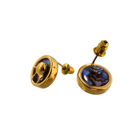 Kiwi Round Stud Earrings with Paua and Gold