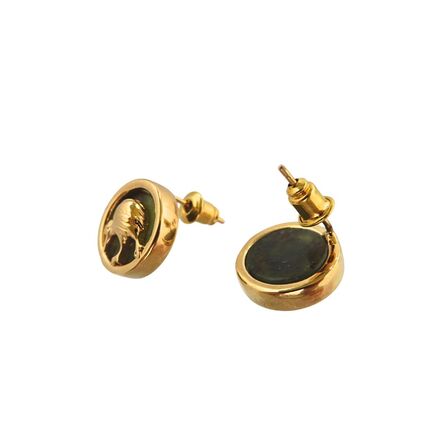 Beautiful Kiwi Round Stud earrings with Pounamu and 18 K gold PVD plated stainless steel. Gold-plating in the PVD process that ensures greater durability and prevention of tarnishing than other technologies, which means you can wear your jewellery in the shower, in the sea and it does not tarnish. The studs measure approximated 10mm in diameter and come in a lovely Wildside Gifts jewellery box.