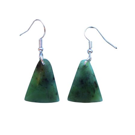 Wedge shaped New Zealand Greenstone earrings with sterling silver hooks.