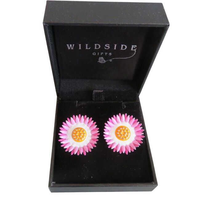 Beautiful, bright, spring Daisy Earrings with sterling silver hooks. They measure 27mm in diameter and come packed in a lovely Wildside Gifts jewellery box.