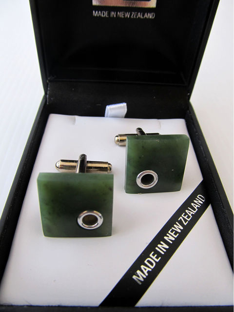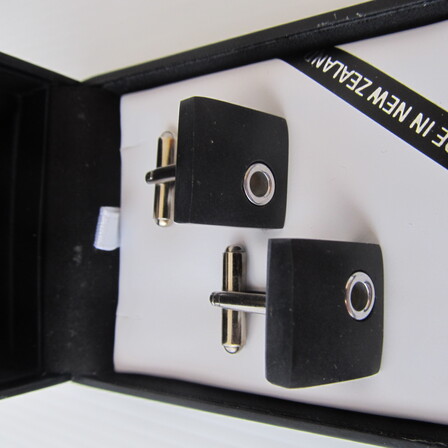 Square, Basalt Cufflinks (18mm x 18mm in size) on sterling silver findings that come in a beautiful Mana NZ jewellery box.